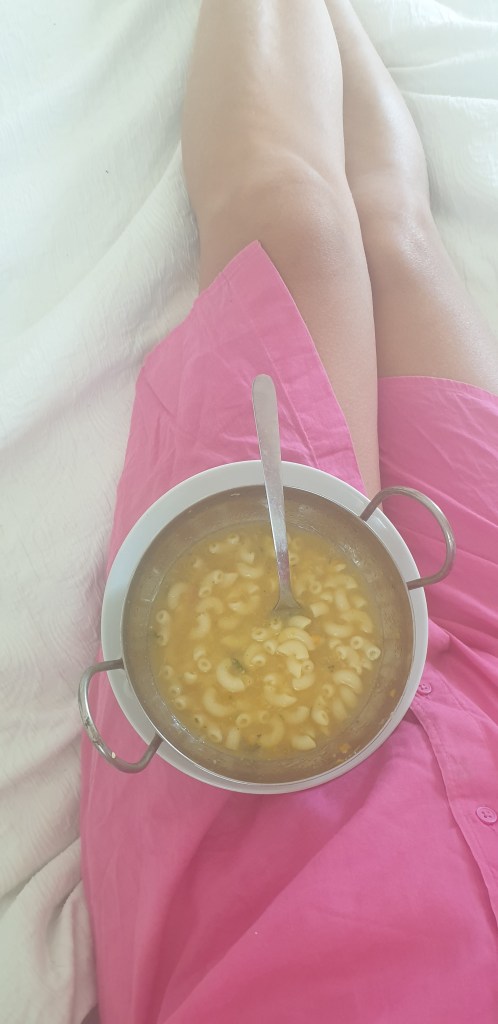 When you wake up of a morning, you can add veggies for the last 45 mins or so just to boost flavour. I like to add a whole garlic bulb (great for fighting colds and flu in winter) which after you can soften through a mesh sieve and whisk into the broth once strained, an onion, a carrot, some celery tops and whatever other bits might be kicking about. I do turn the heat up to about 130 to finish off but just as long as it doesn’t end up boiling, you’re good