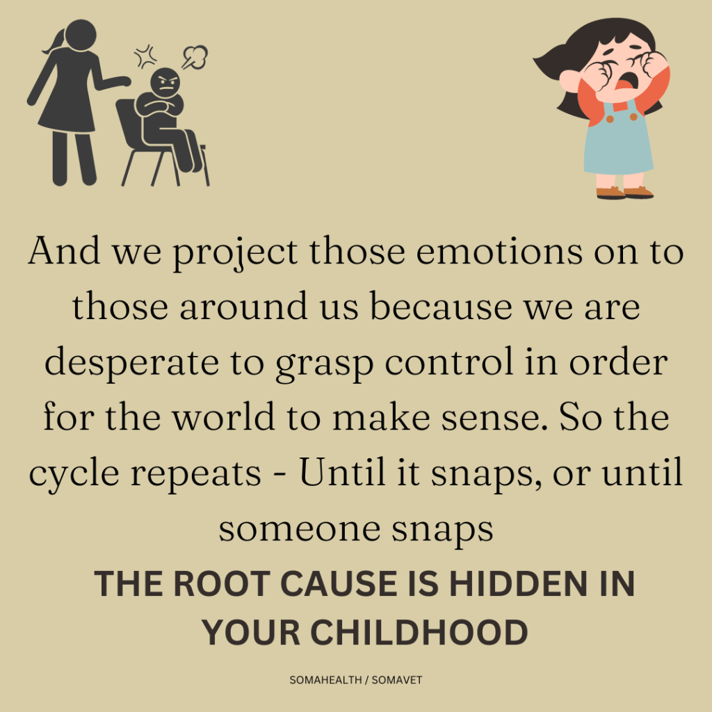 We have to know first and foremost, how the body and brain work together (which we will get on to later on in the program) but as everything has a ROOT CAUSE we need to establish this first and often it stems from our childhood. Our innocent times where our brain and body are still developing but we are steered, led and taught by adults who we would hope have an understanding about how it all works but actually haven’t got the first clue about conscious living, emotional intelligence or their own brain and body, hence why we inherit their trauma as they pass it down to us, without realising 99% of the time.