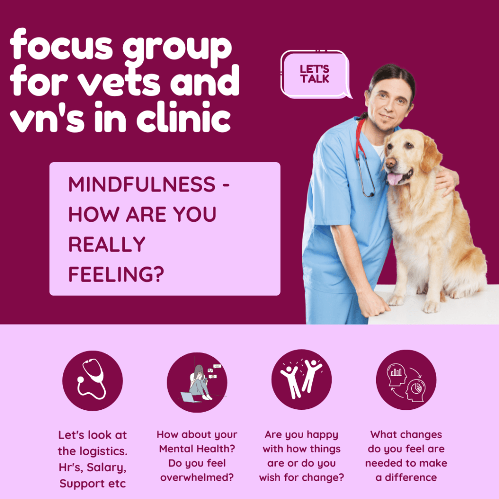 Our MINDFUNESS IN PRACTICE focus group is open to each and every individual residing in THE VETERINARY SECTOR regardless of position, title, contract type etc and is a 6 PAGE SURVEY that asks questions pertaining to